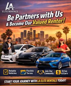 At LA Elite Rentals, we don’t just provide vehicles—we build partnerships. Whether you’re a rideshare driver, a delivery professional, or someone in need of reliable